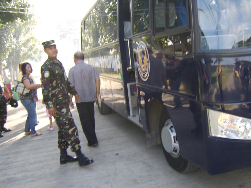 St Francis House's orphans being assisted on board a PAF bus for a tour inside the EAAB's camp in Sta Maria, Zamboanga City.